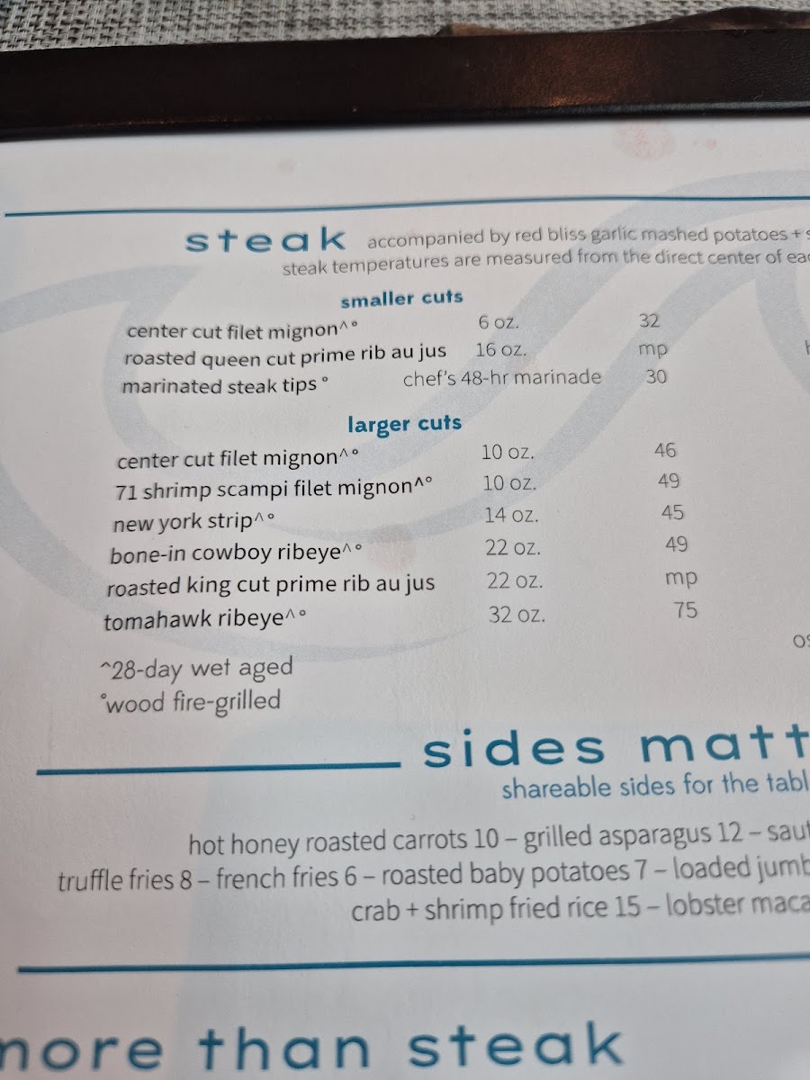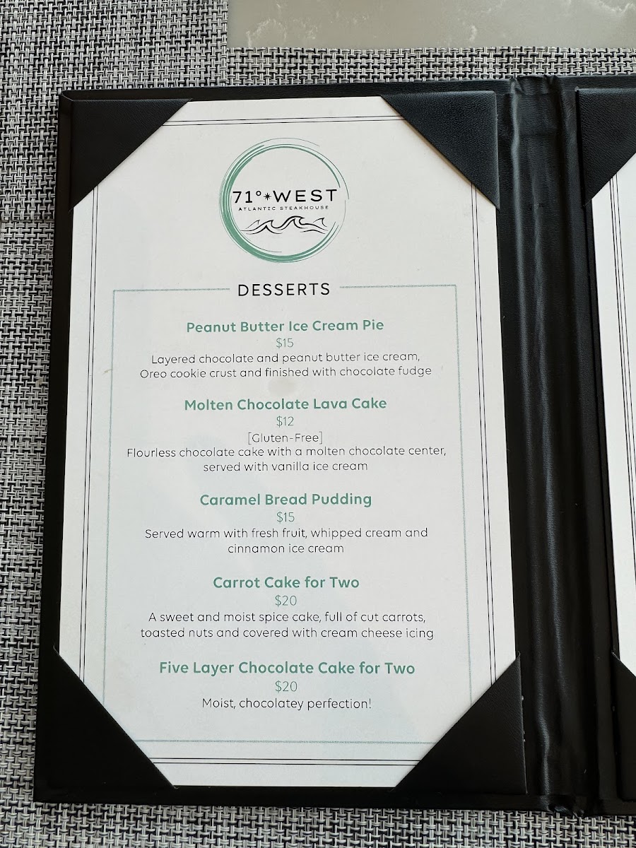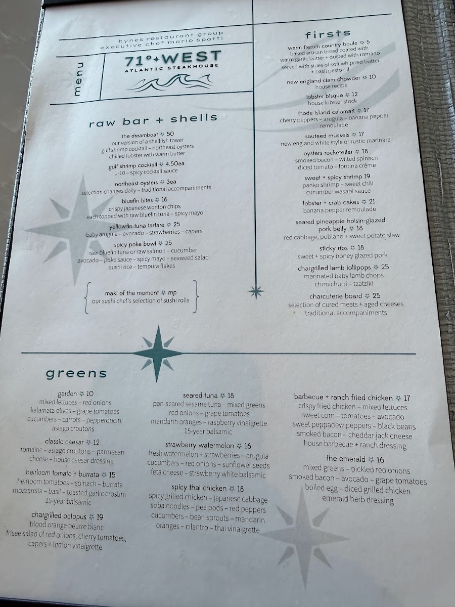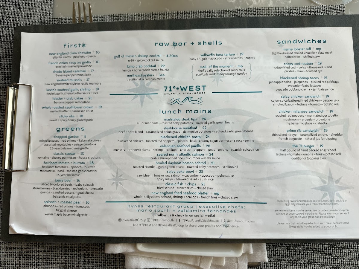 The 71 West Atlantic Steakhouse Menu offers a delightful dining experience right in the heart of Plymouth. Located in the rear building at 114 Water St, on the second floor, this spot invites you to enjoy a mouthwatering selection of steaks, seafood, and more, all served in a cozy, intimate atmosphere. Whether you're here for a special occasion or just a casual meal, you'll find something to satisfy every craving. The menu features tender cuts of perfectly cooked steak, fresh seafood dishes, and savory sides that are sure to please. With every bite, you'll experience the care and quality that goes into each dish, making it a favorite for both locals and visitors alike. The view of the harbor adds the perfect touch to your meal, making the whole dining experience even more memorable.